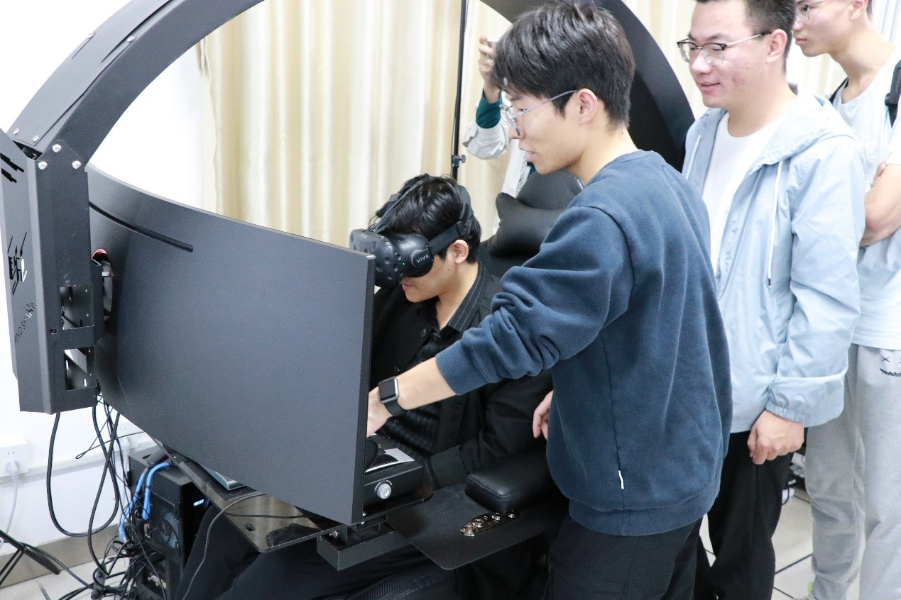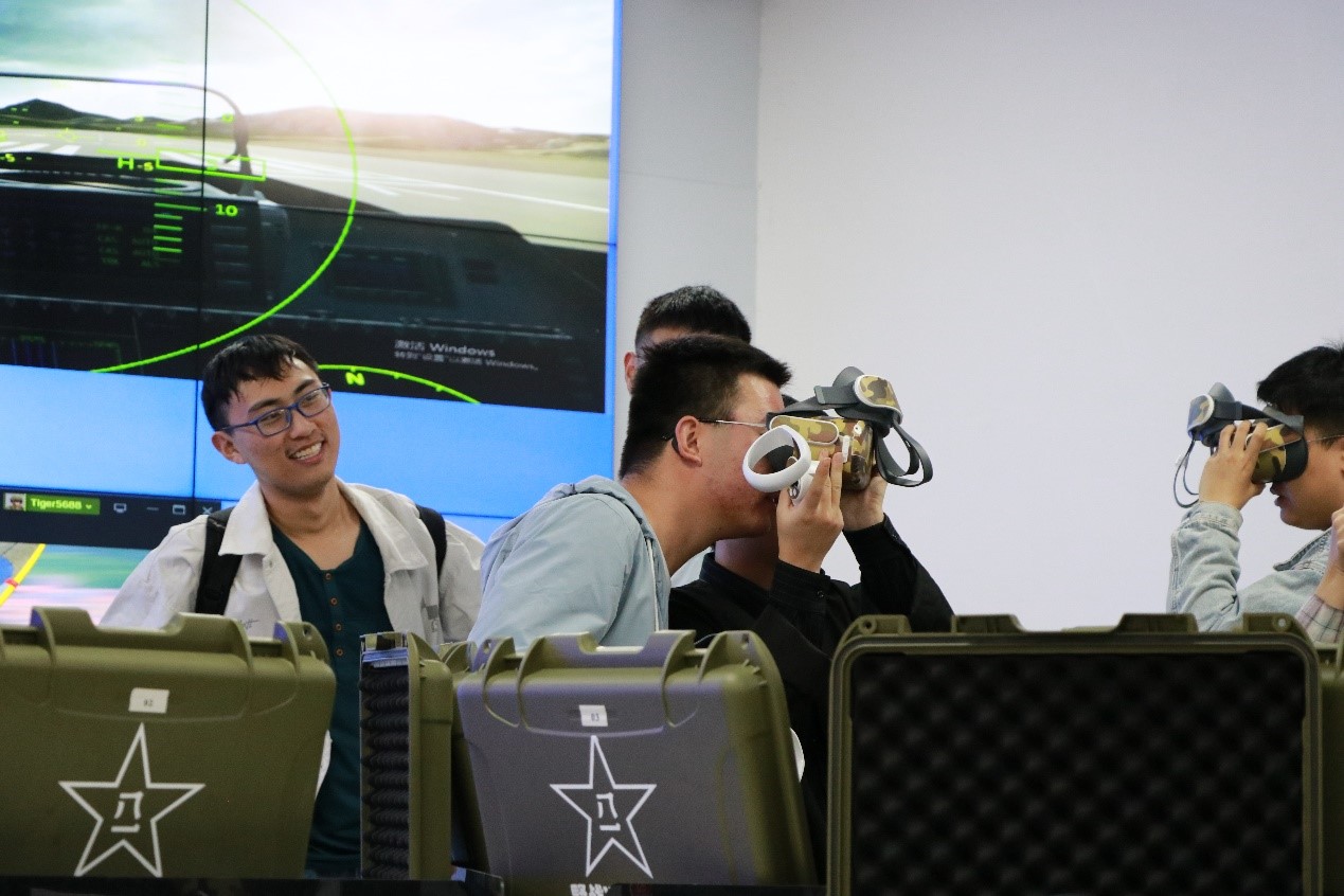 历史文化学院硕士生第二支部的党员们体验了VR党建一体机中的党建展厅和可互动的动画展厅。他们在VR航母舰载机上扮演“海陆空天”战士,模拟了激烈对抗的飞行战斗,此外还利用VR党建工作站进行了有趣的党建知识互动答题。