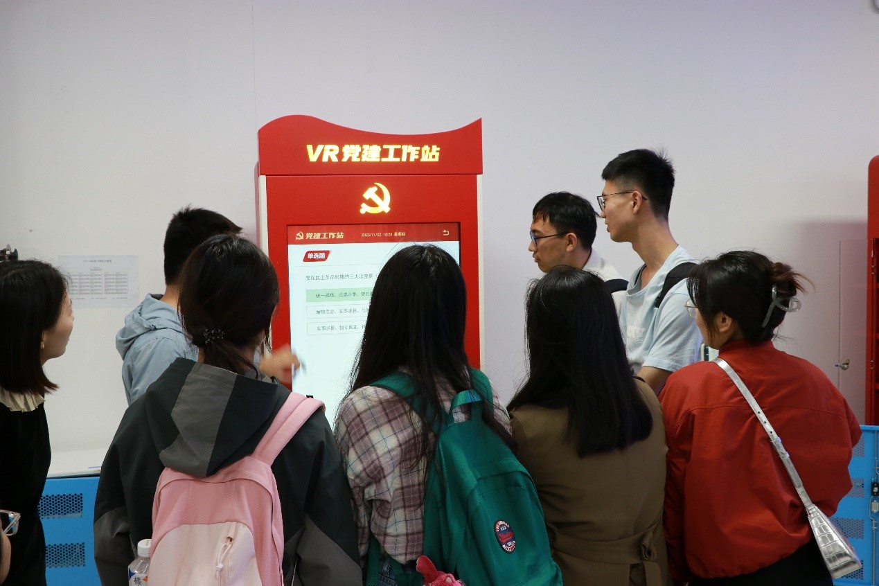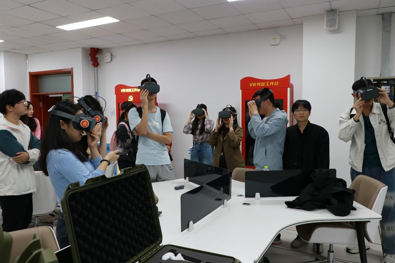 在党建亮点项目参观环节,历史文化学院硕士生第二党支部党员们来到计算机学院的VR智慧党建实验室。