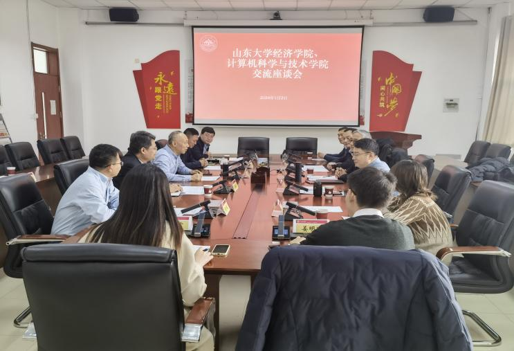 贾智平首先对经济学院领导班子一行的到来表示热烈欢迎,并介绍了计算机学院近几年的发展情况。结合年度主题教育学习内容,分别介绍了学院在推进党的建设、人才培养、学科发展、科研创新、服务社会等方面的具体工作举措,并分享了学院以党建引领发展的经验做法。然后着重介绍了学院自搬迁至青岛校区以来,在凝练学科方向、推动学科交叉融合方面所做的探索努力,以及下一步学院在推进建设元计算研究院和人工智能学院等方面的规划及发展目标。同时,希望藉此机会能够深入推进两院学科交融合作,促进内涵式发展,在互促互进中共同提升两院治理能力。